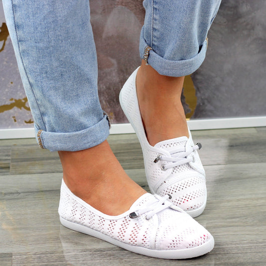 Białe Wygodne Koronkowe Trampki Tenisówki Damskie na lato