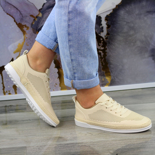 Beżowe ażurowe tenisówki damskie sportowe espadryle Minis