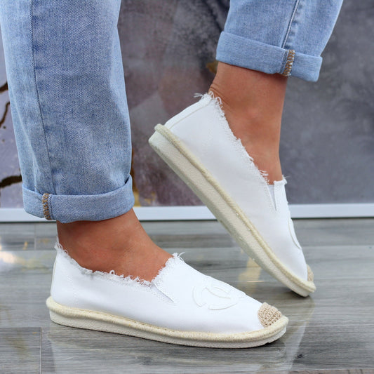 MODNE BIAŁE MATERIAŁOWE ESPADRYLE DAMSKIE Z LOGOWANIEM