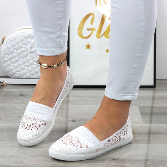 Białe Wygodne Koronkowe Trampki Tenisówki Damskie WSUWANE NA GUMKĘ