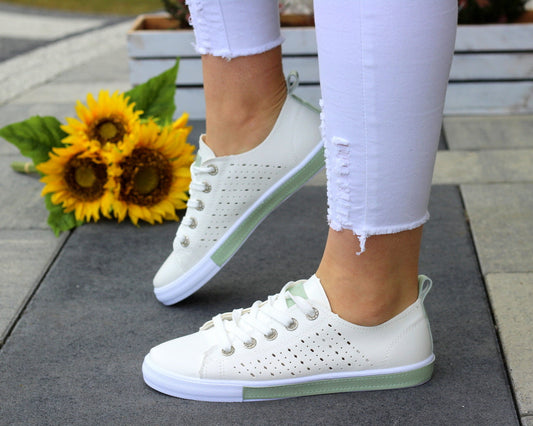 Miękkie, wygodne białe tenisówki damskie w dziurki Great