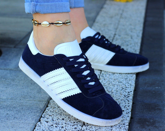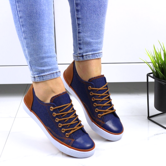 РазпродажбаGranatowe tenisówki damskie sznurowane z paskami