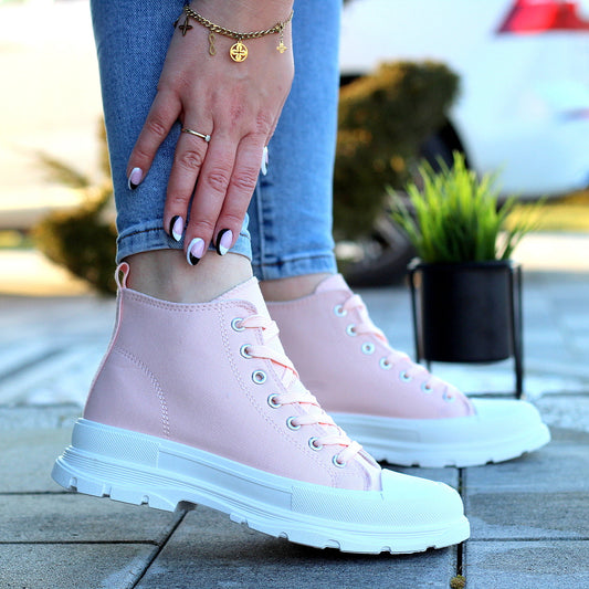 РазпродажбаWysokie Różówe Trampki Damskie Sznurowane Star