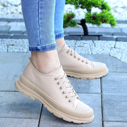 Krótkie Jasno Beżowe Trampki Damskie Sznurowane Star