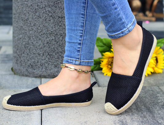 Czarne Wygodne Siatkowe Espadryle Trampki Tenisówki