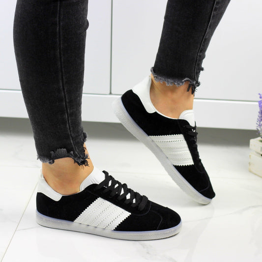 РазпродажбаCzarne tenisówki damskie sznurowane z paskami
