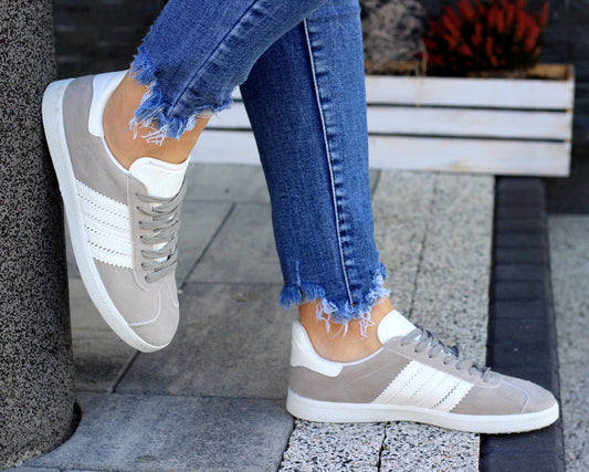 РазпродажбаSzare tenisówki damskie sznurowane z paskami