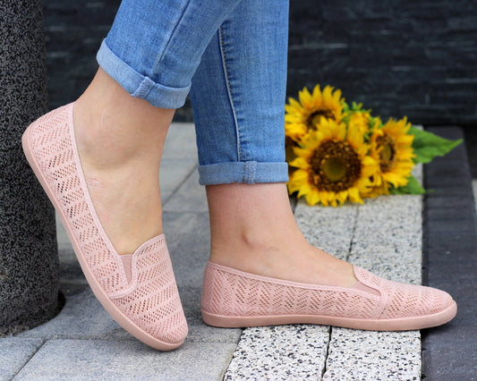 РазпродажбаPudrowy Róż Wygodne Koronkowe Trampki Tenisówki