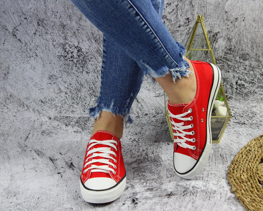 РазпродажбаCzerwone sznurowane gładkie trampki damskie