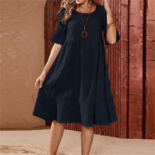 РазпродажбаLuźna sukienka na co dzień w jednolitym kolorze
