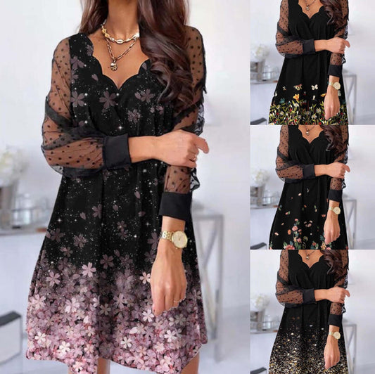 РазпродажбаSiódmy rękaw V-neck sukienka w kwiaty