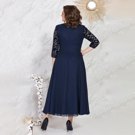 Plus Size Okrągły Dekolt Okrągły Dekolt Patchwork Cekinowa Sukienka
