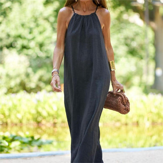💃Едноцветна, свободна, дишаща рокля с презрамки💛