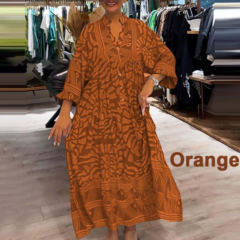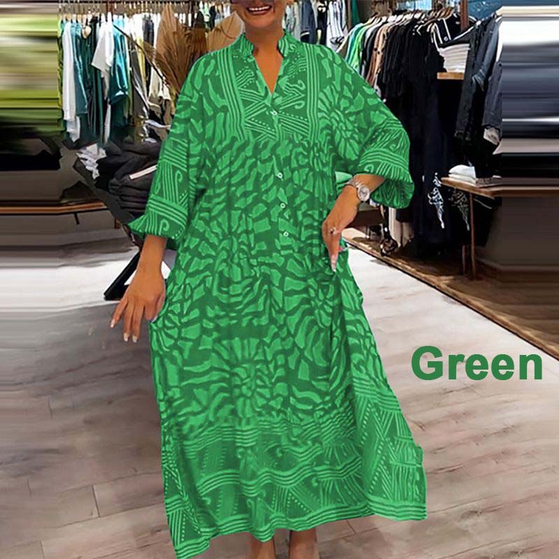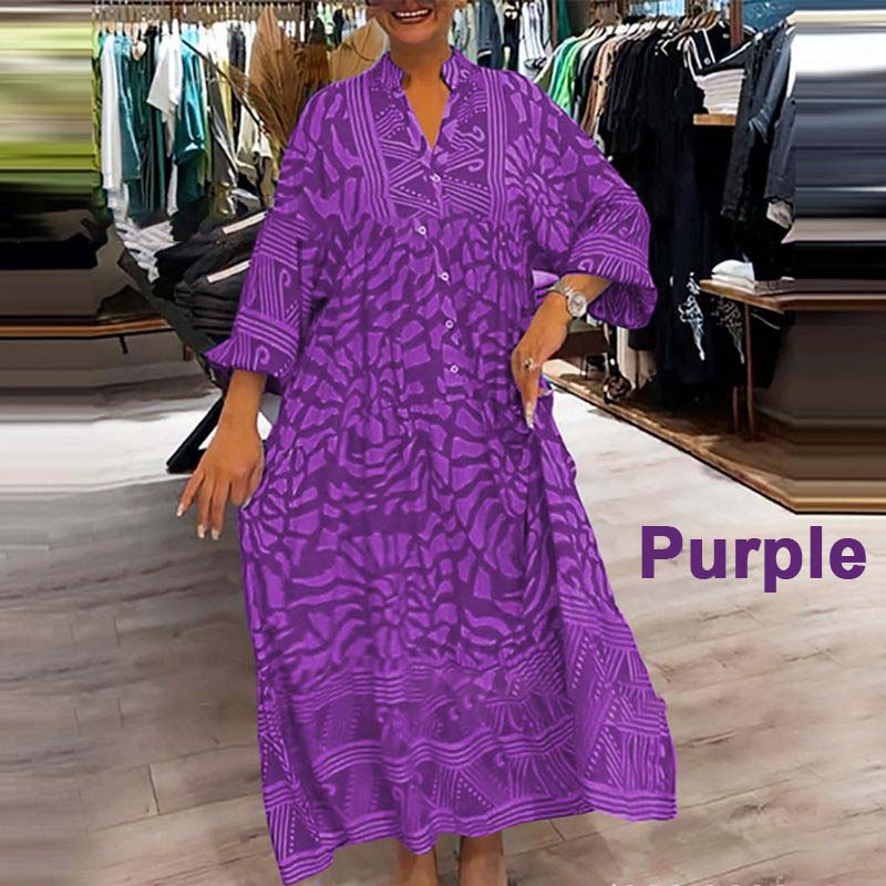 Пакетът включва: Дамска рокля с V-образна щампа и свободно деколте.