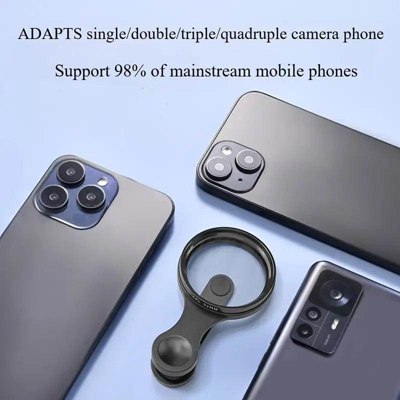 Издигнете уменията си за мобилна фотография на следващото ниво с нашия първокласен 52 mm CPL обектив за вашия телефон. Заснемайте кристално чисти, живи изображения, които съперничат на професионални снимки, превръщайки всяка снимка в зашеметяващ шедьовър.