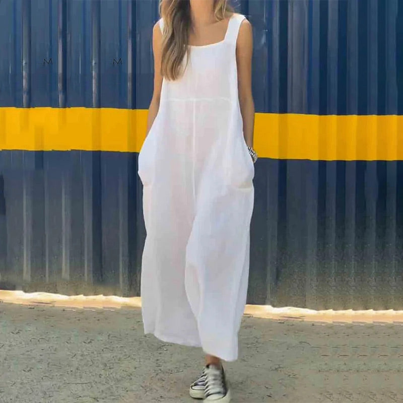 Ежедневен дишащ гащеризон без ръкави с квадратно деколте