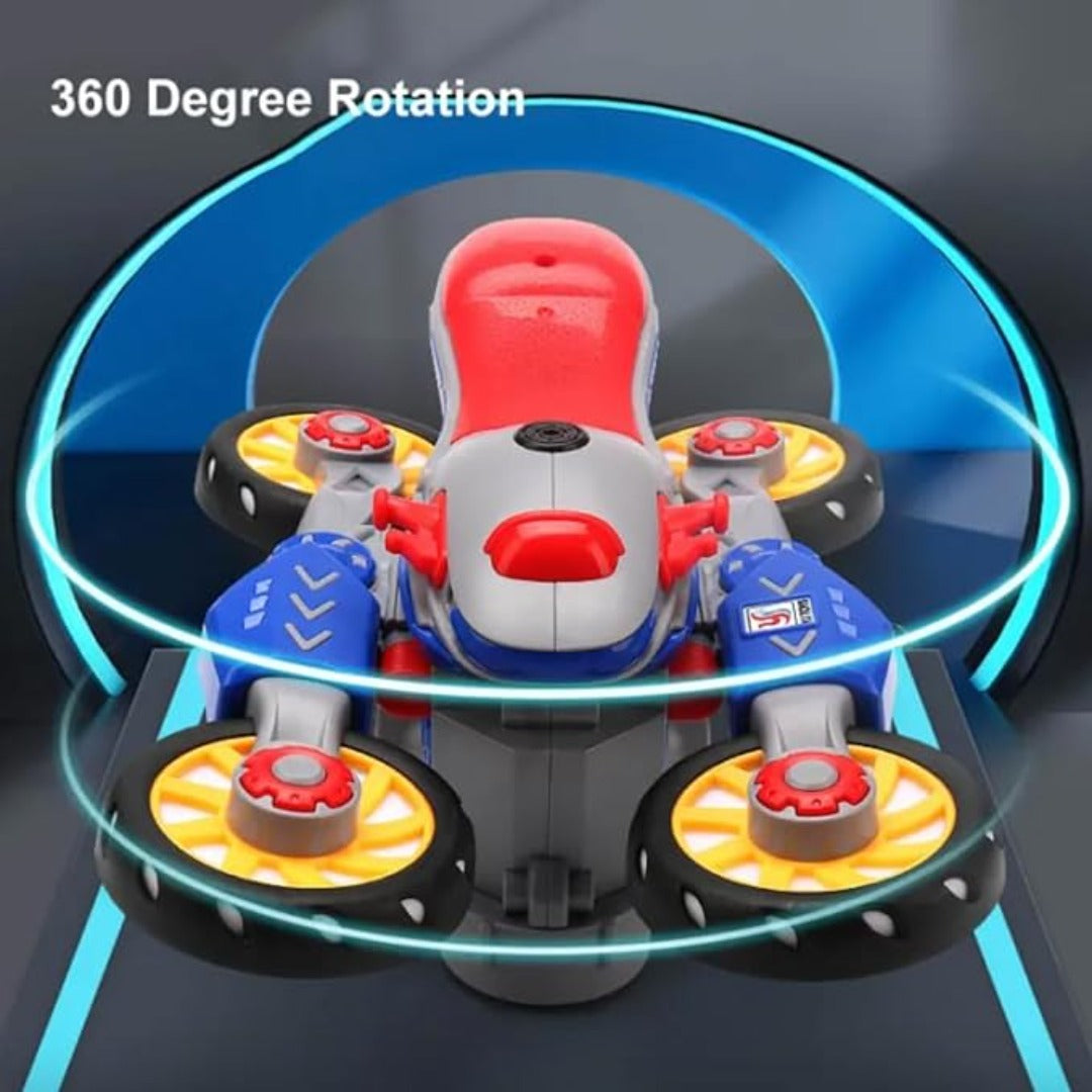 【360-градусово трансформиращо действие】: Гледайте със страхопочитание как този мотоциклет-играчка се трансформира и извършва спиращо дъха въртене на 360 градуса. Динамичният дизайн добавя допълнително вълнение към играта, като държи децата ангажирани и забавни.