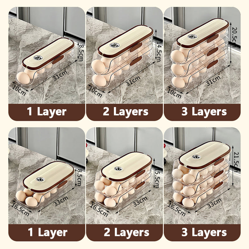 КОНВЕНЦИОНАЛНА СТАБИЛНОСТ: Просто вземете едно яйце и останалото автоматично ще се претърколи напред, за да запълни празнината. А стабилизиращите фиксиращи катарами отстрани осигуряват допълнителна защита, така че можете да отваряте и затваряте вратата на хладилника без проблеми.