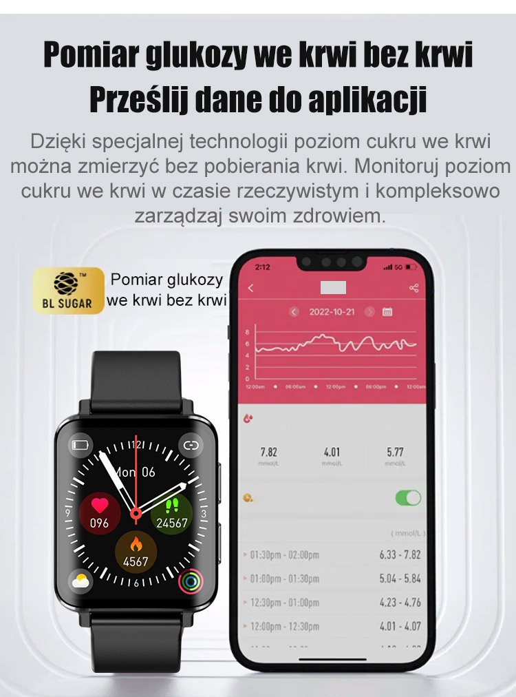 Inteligentny zegarek do pomiaru poziomu glukozy we krwi