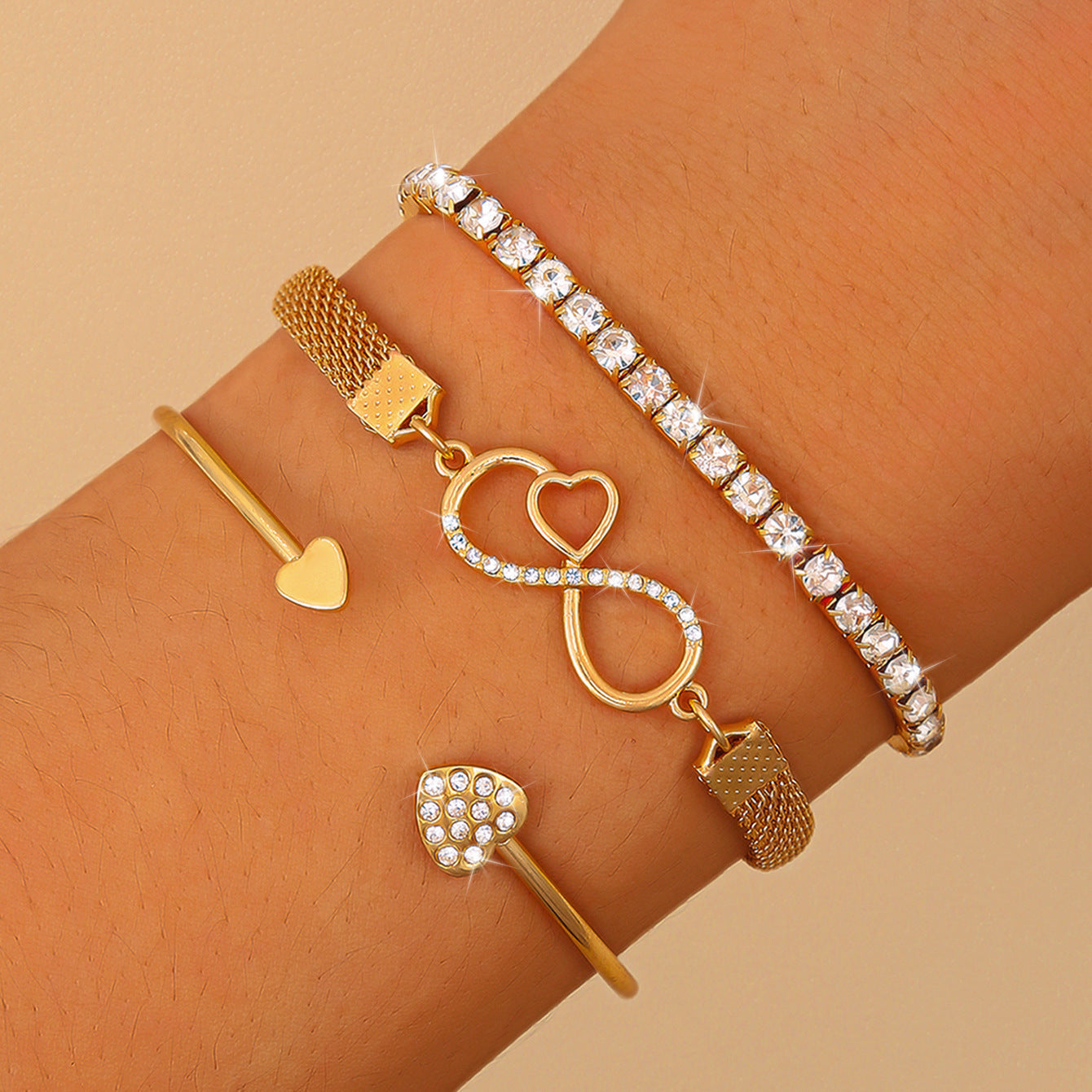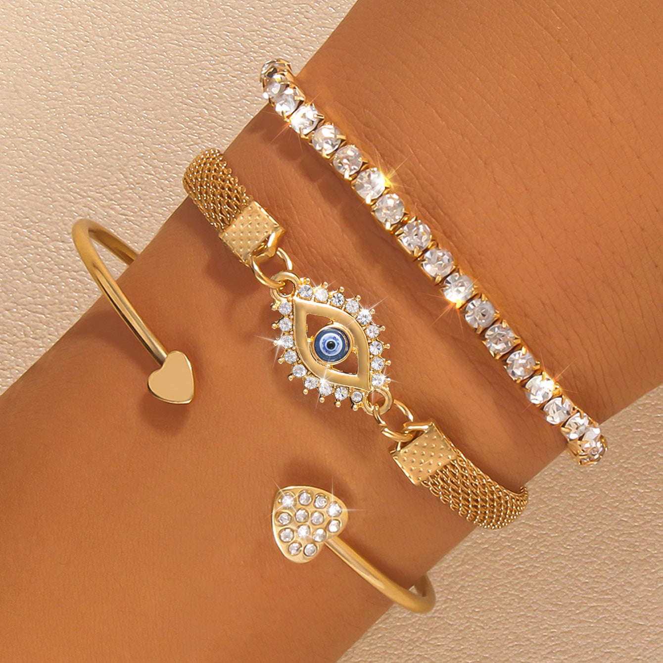 Този комплект от три бохемски златни гривни перфектно съчетава елегантност, блясък и стил, осигурявайки запомняща се визия за всеки повод. Тези гривни ще добавят нотка лукс към всяко облекло. Независимо дали отивате на вечерно събитие или искате да подобрите небрежния си вид, тези гривни ще ви направят център на вниманието.