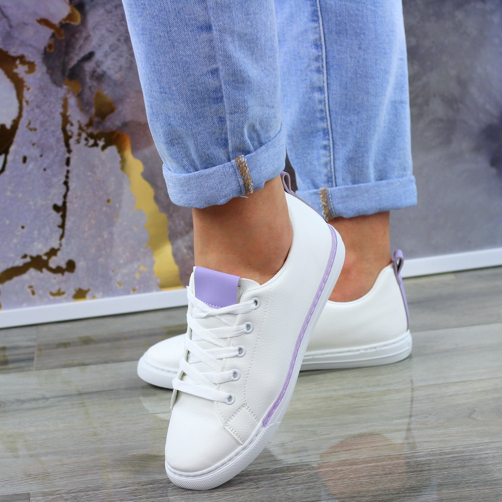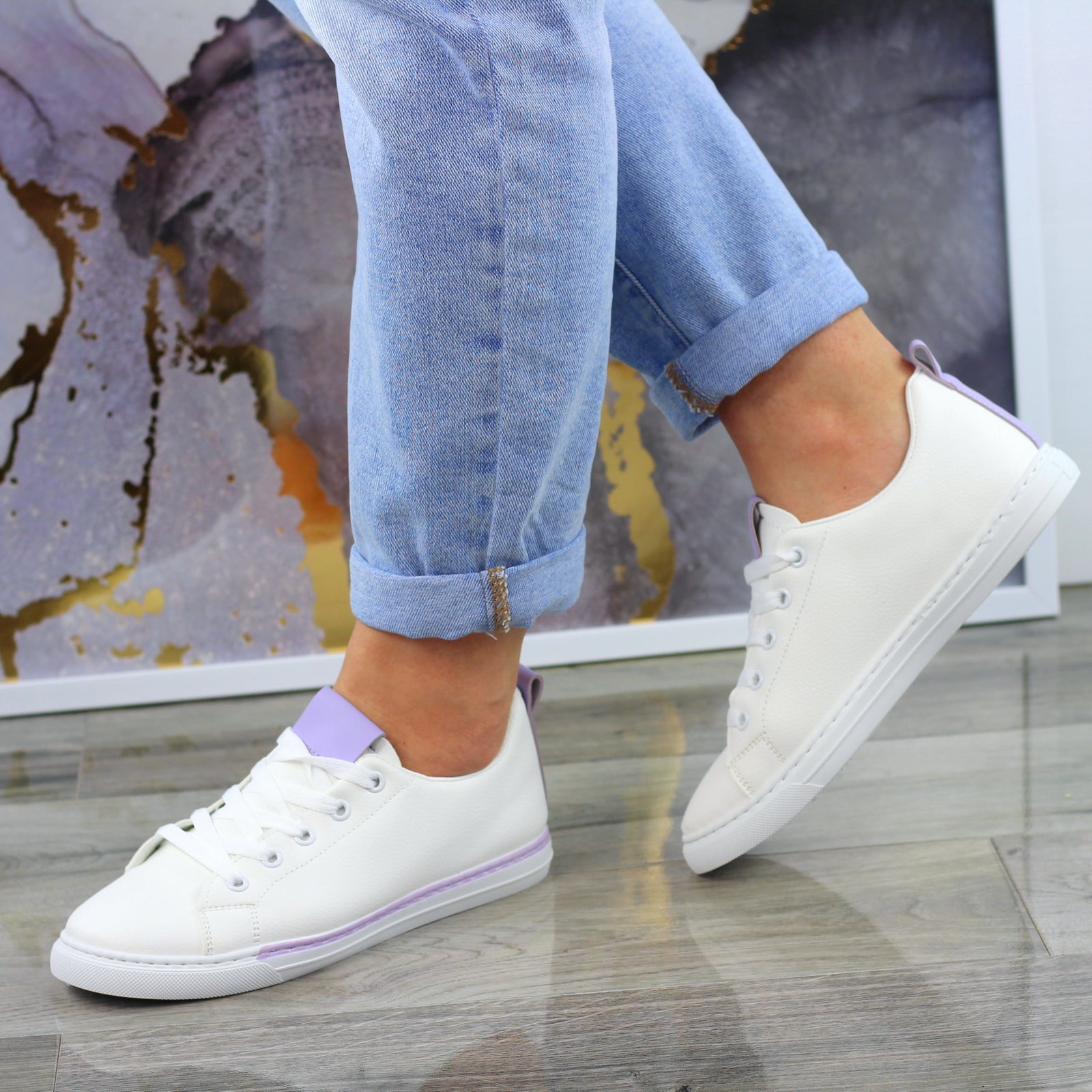 Białe trampki mięciutkie sznurowane slim na wygodnej podeszwie wykonane z mięciutkiej eko skóry.