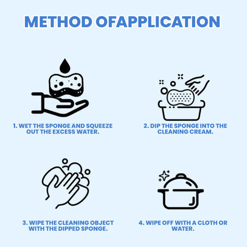 ЛЕСЕН ЗА ИЗПОЛЗВАНЕ - Използвайте включената мека и издръжлива почистваща гъба, която работи перфектно с почистващия крем, за да осигурите гладко почистване без надраскване, като същевременно ефективно премахвате замърсяванията.