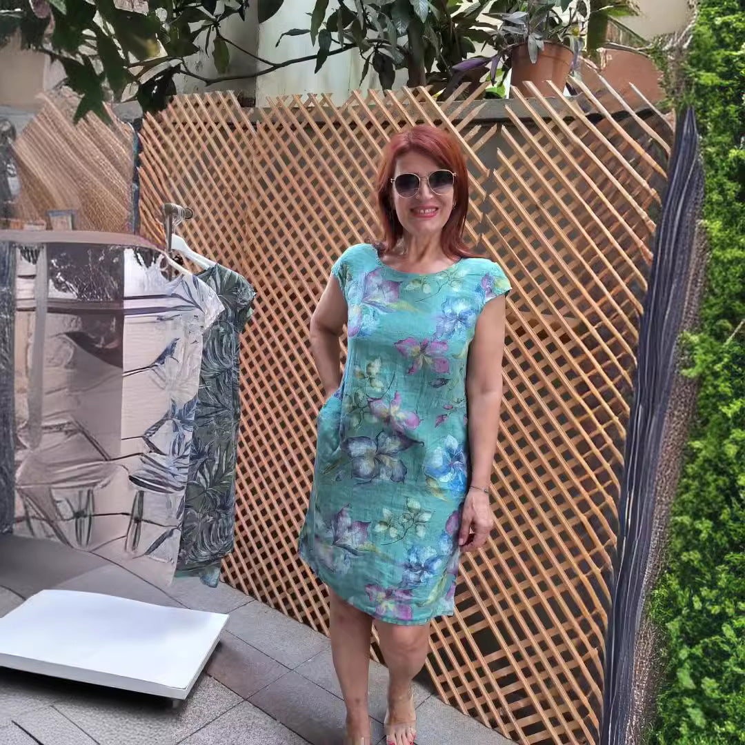 👗 Рокля с щампа, широки ръкави и обло деколте