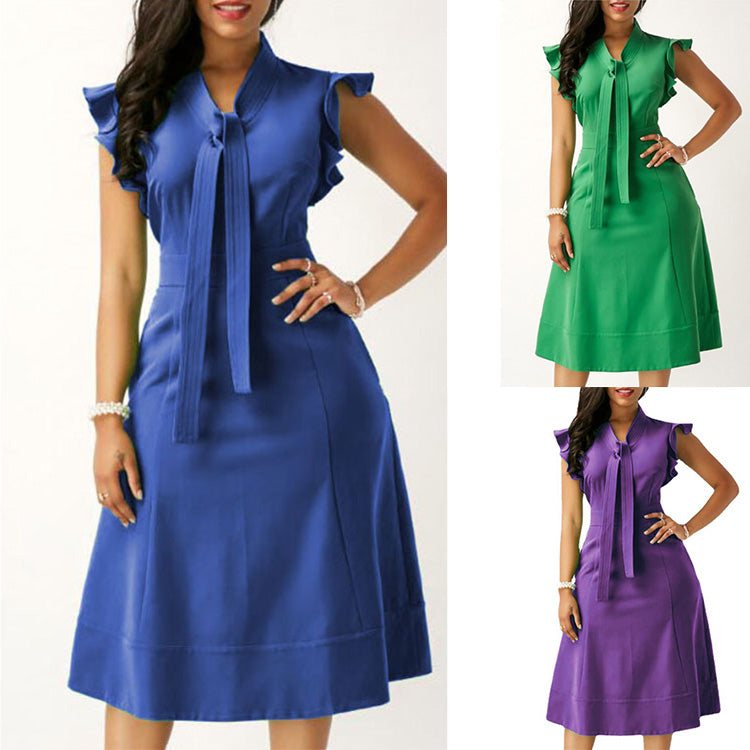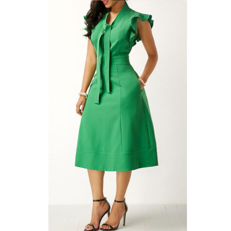 Seksowna damska sukienka z krótkimi rękawami i dekoltem w serek