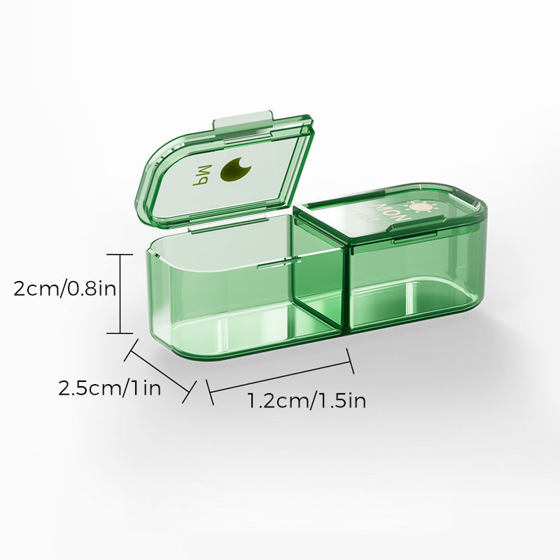 MATERIAŁ PREMIUM: Nasz organizer na leki 2-3 razy dziennie jest wykonany z materiału spożywczego przeznaczonego do leków lub celów medycznych, zewnętrzny pojemnik jest wykonany z tworzywa ABS, wolnego od BPA, przezroczystego pudełka do przechowywania dozownika i AM. Flaga /PM ułatwia użytkownikowi rozróżnienie.